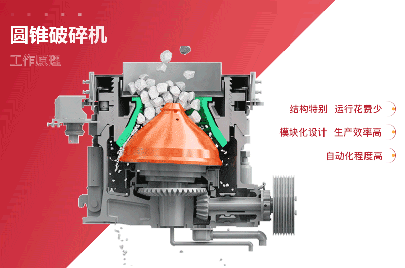 復(fù)合圓錐破碎機(jī)結(jié)構(gòu)簡(jiǎn)單,便于操作、維護(hù),排料口調(diào)整方便快捷,檢修省時(shí)省力,特別是襯板易于快速更換,減少了停機(jī)時(shí)間。
